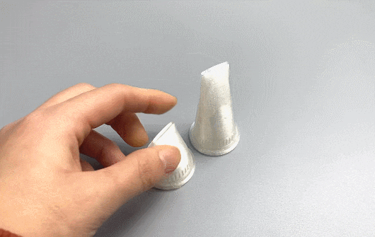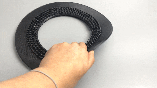 보는 것과 같이 굵은 외곽은 잘 휘지 않고 안쪽의 얇은 형상은 매우 잘 구부러집니다.