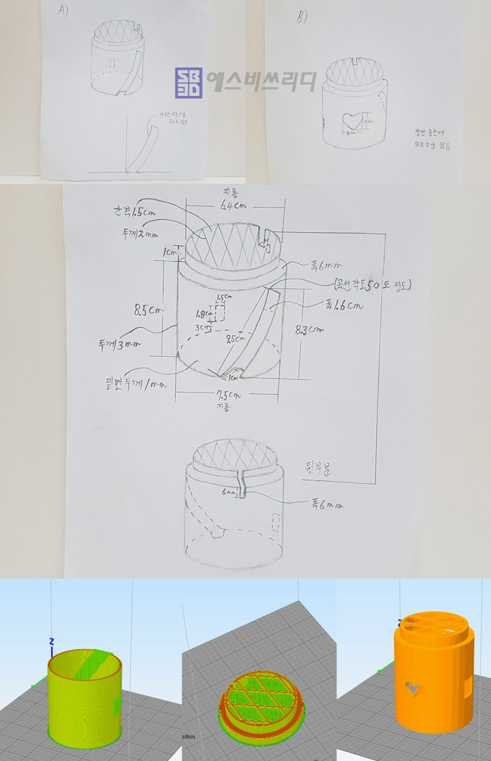 아래처럼 직접 종이컵으로 만들어 붙인 것을 보내주셔서 이를 역설계 의뢰를 한 적도 있었답니다.